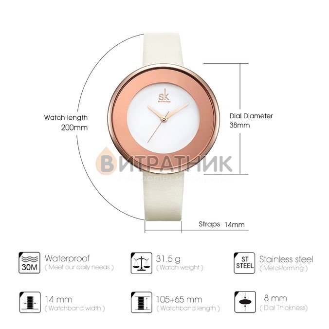 Найкраща модель жіночого годинника Shengke Nice New дозволить вам доречно підкреслити свою вишуканість, елегантність та неперевершений стиль. Дизайн аксесуара настільки впізнаваний, що вам позаздрить кожна світська левиця. Представлена модель ідеально пасуватиме до вашого образу, хоч би яким він не був: класика, кежуал, мілітарі чи гранж. В одному випадку годинник гармонійно зливатиметься з луком, а в іншому — разюче виділятиметься. Як результат, ваше зап’ястя з таким оригінальним аксесуаром завжди буде виглядати витонченим. Жіночий годинник Shengke Nice New створений для того, щоб привертати увагу чоловіків та попутно викликати заздрощі конкуренток.