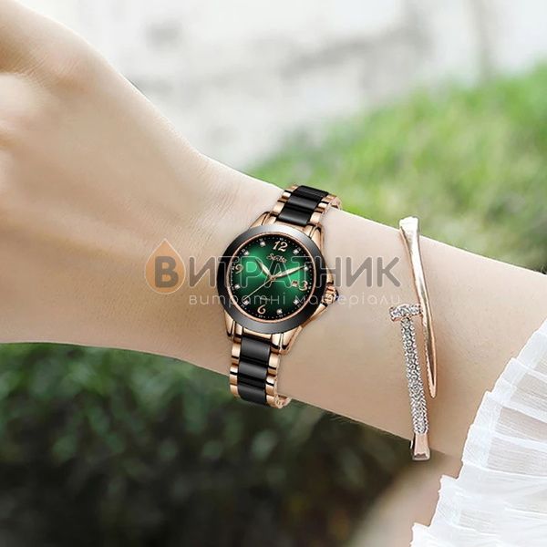 Найкраща модель жіночого годинника Sunkta Ceramic Green дозволить вам доречно підкреслити свою вишуканість, елегантність та неперевершений стиль. Дизайн аксесуара настільки впізнаваний, що вам позаздрить кожна світська левиця. Представлена модель ідеально пасуватиме до вашого образу, хоч би яким він не був: класика, кежуал, мілітарі чи гранж. В одному випадку годинник гармонійно зливатиметься з луком, а в іншому — разюче виділятиметься. Як результат, ваше зап’ястя з таким оригінальним аксесуаром завжди буде виглядати витонченим. Жіночий годинник Sunkta Ceramic Green створений для того, щоб привертати увагу чоловіків та попутно викликати заздрощі конкуренток.